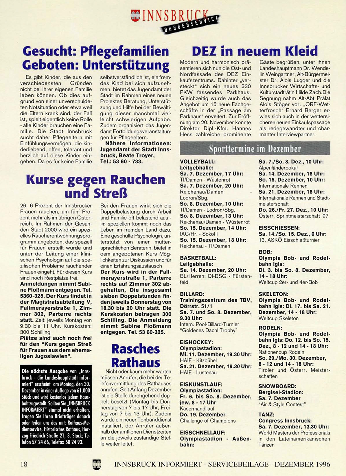 INNSBRUCK INFORMIERT - SERVICEBEILAGE - DEZEMBER 1996