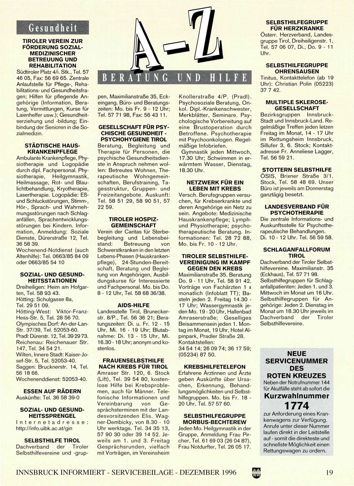 INNSBRUCK INFORMIERT - SERVICEBEILAGE - DEZEMBER 1996