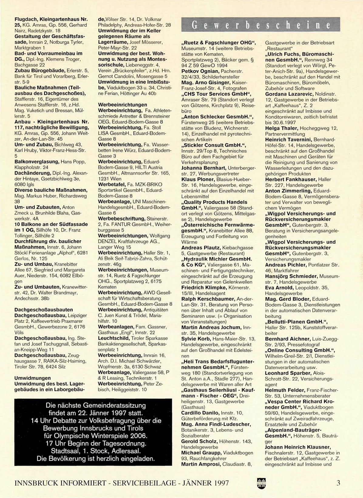 INNSBRUCK INFORMIERT - SERVICEBEILAGE - JÄNNER 1997