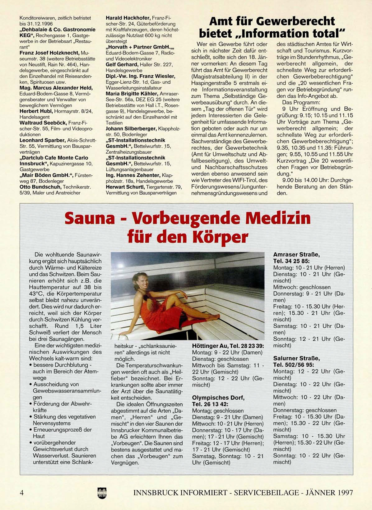 INNSBRUCK INFORMIERT - SERVICEBEILAGE - JÄNNER 1997