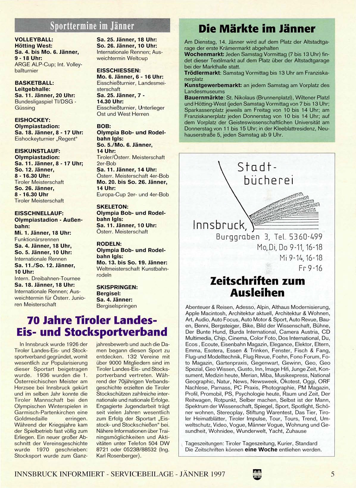 INNSBRUCK INFORMIERT - SERVICEBEILAGE - JÄNNER 1997