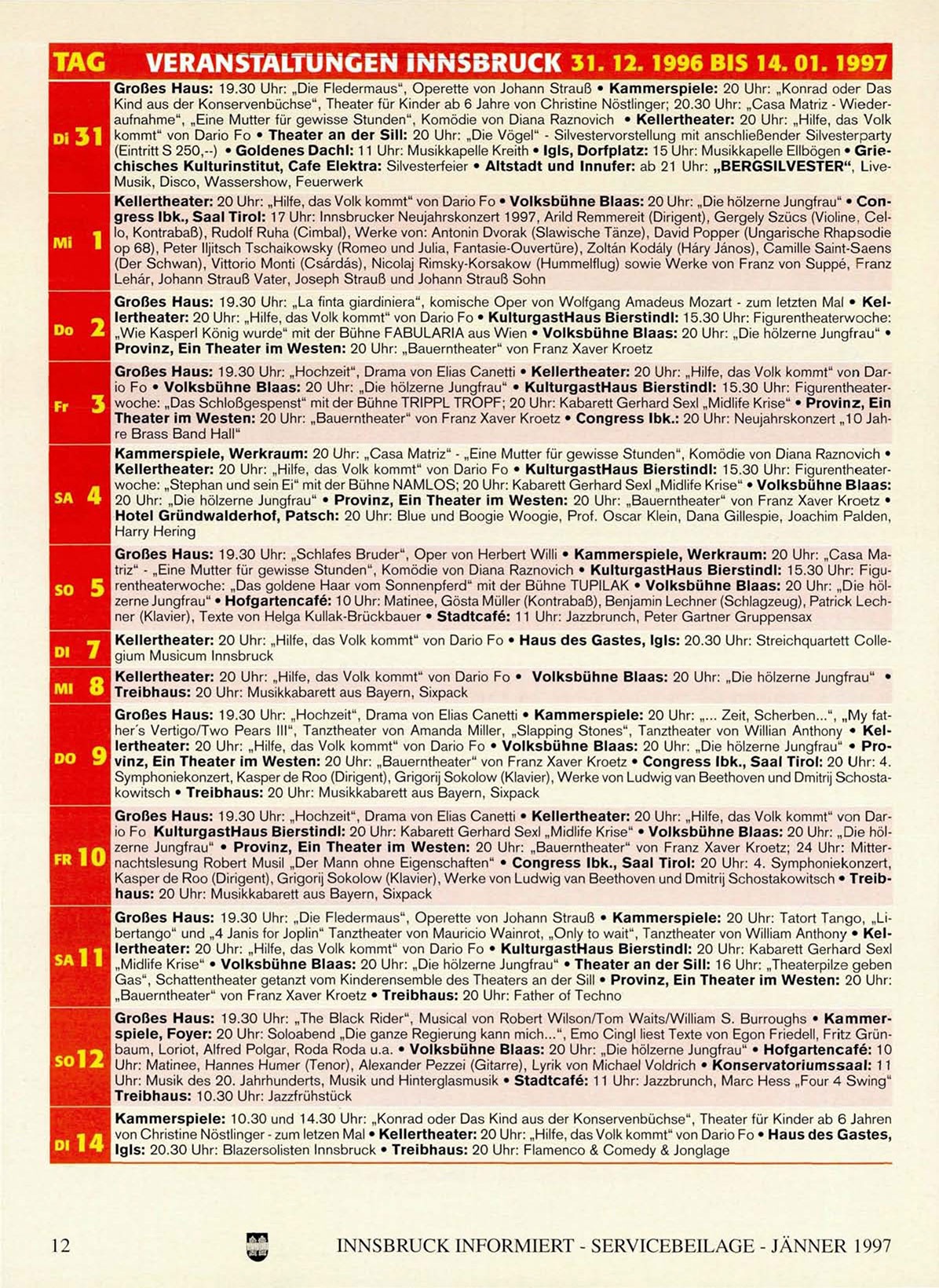 VERANSTALTUNGEN INNSBRUCK 31.12.1996 BIS 14.01.1997