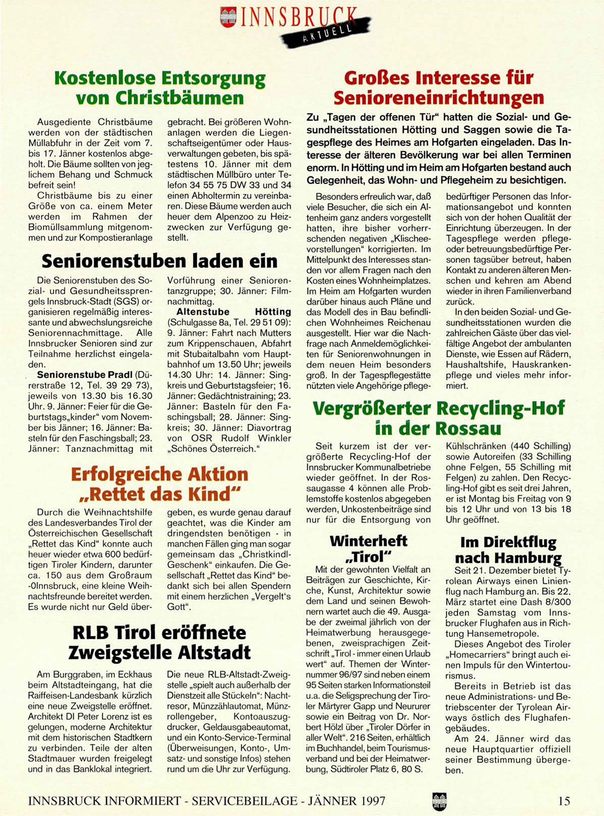 INNSBRUCK INFORMIERT - SERVICEBEILAGE - JÄNNER 1997