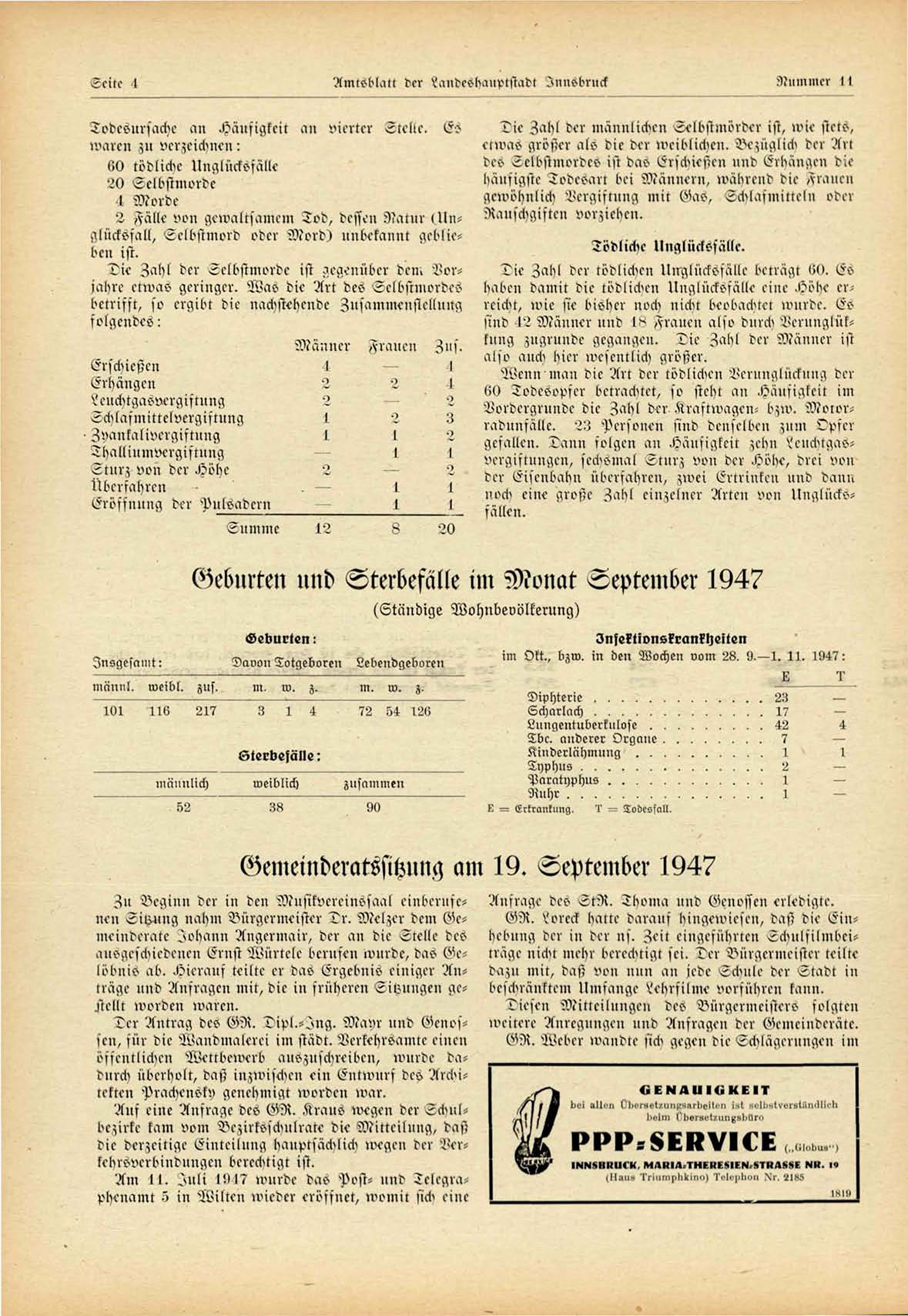 Geburten und Sterbefälle im Monat September 1947