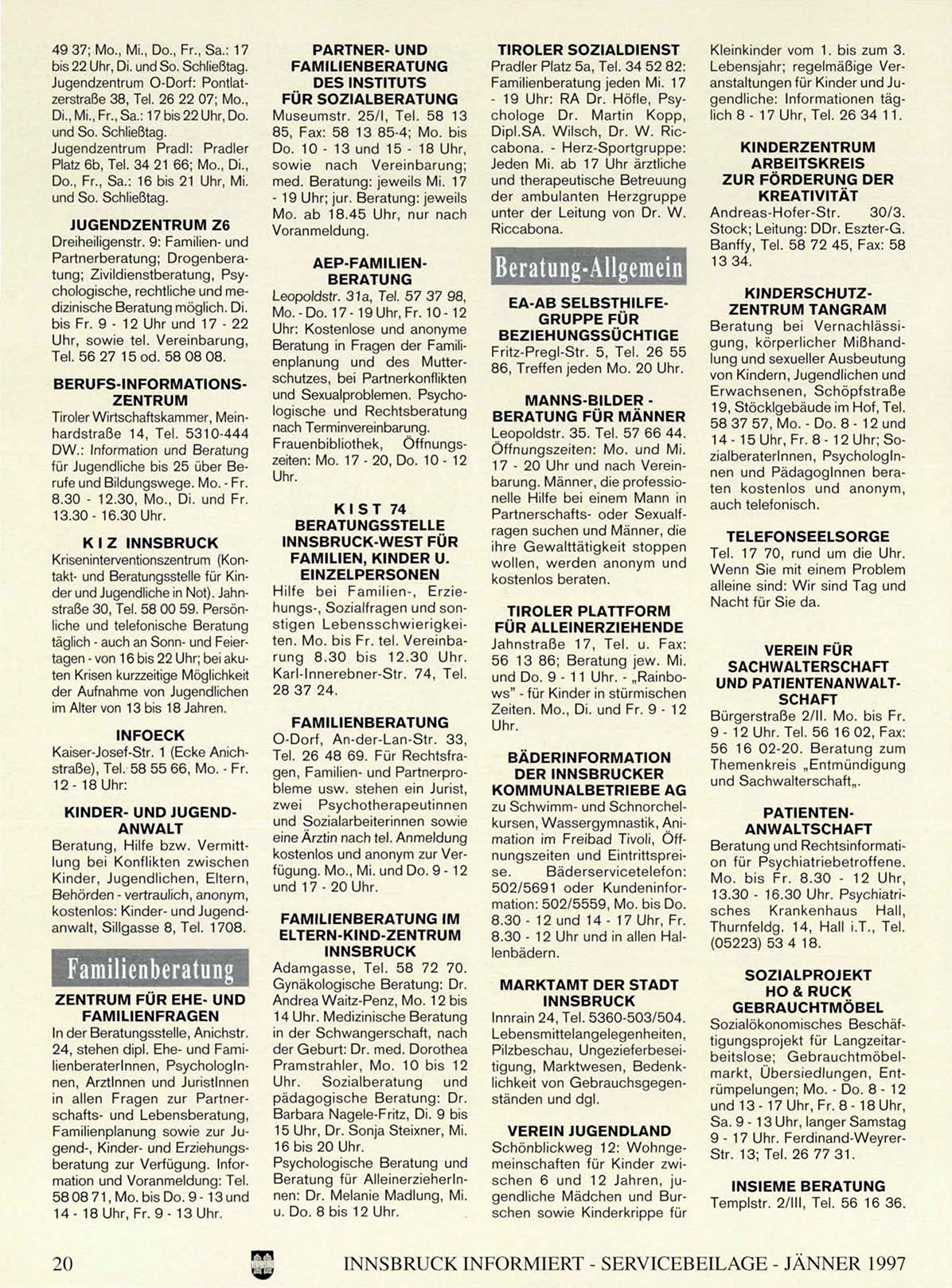 INNSBRUCK INFORMIERT - SERVICEBEILAGE - JÄNNER 1997