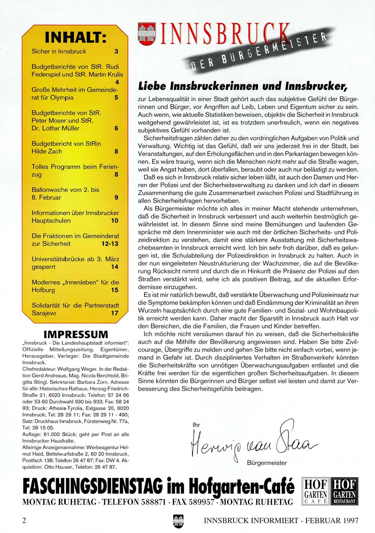 INNSBRUCK INFORMIERT - FEBRUAR 1997