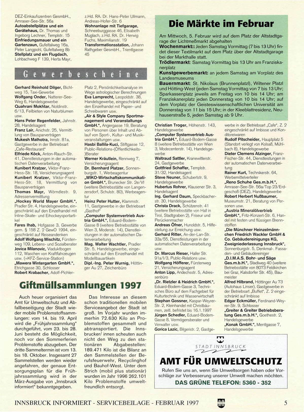 INNSBRUCK INFORMIERT - SERVICEBEILAGE - FEBRUAR 1997