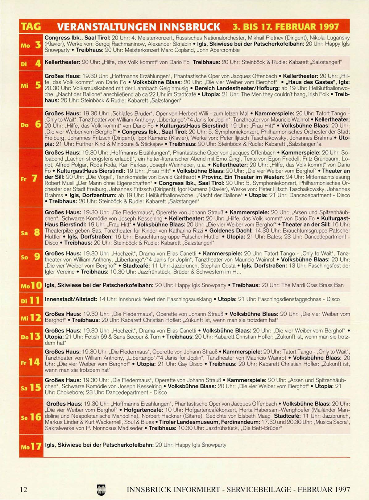 INNSBRUCK INFORMIERT - SERVICEBEILAGE - FEBRUAR 1997