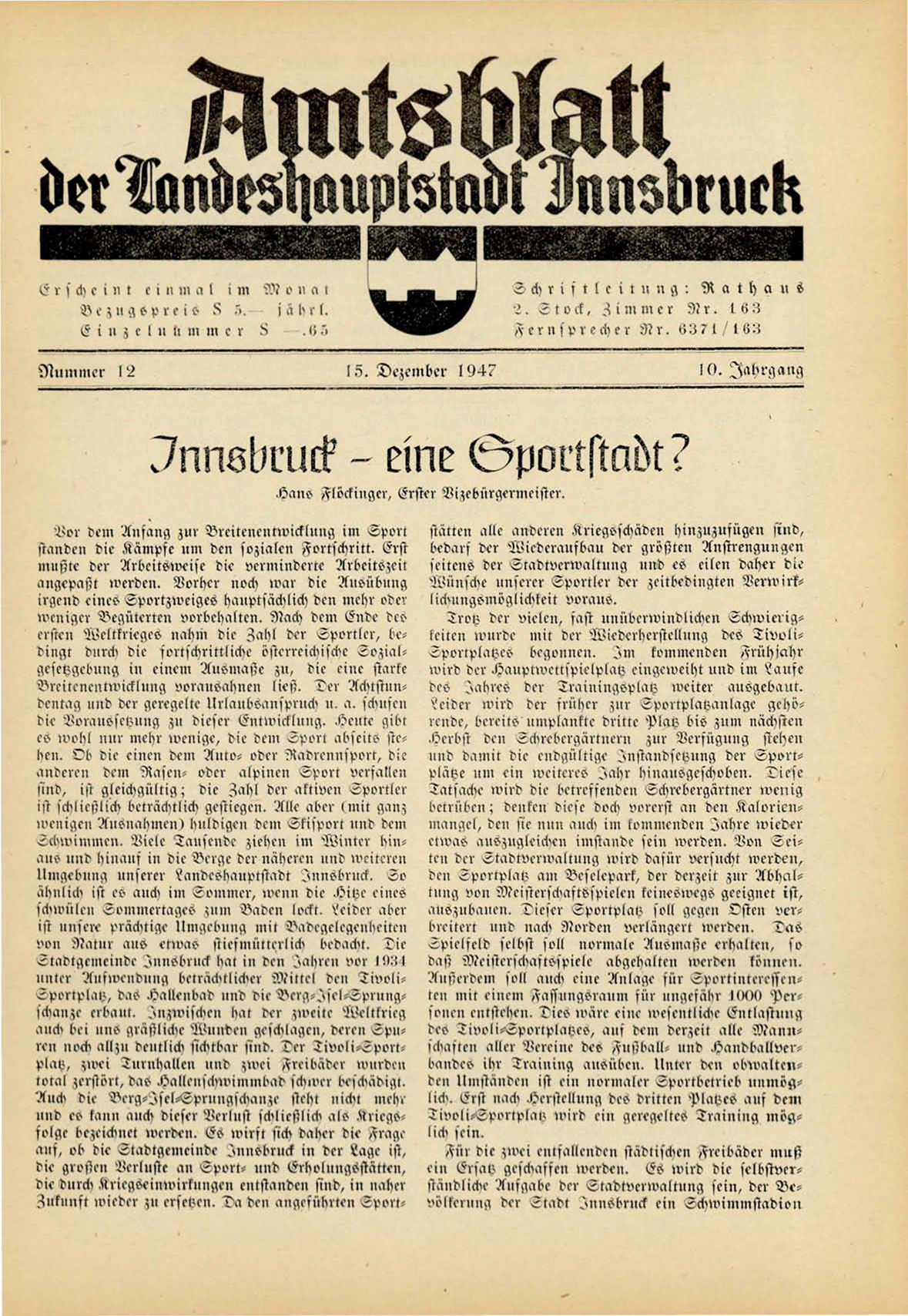 ^tadtgeincindl" Innsbruck hat in den fahren vor l!^!I