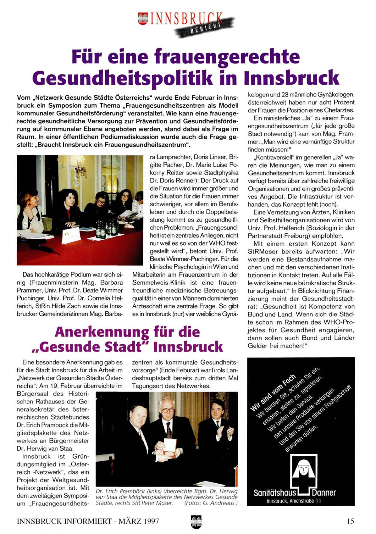 vorsorge" (Ende Feburar) warTirols Lan„Netzwerk der Gesunden Städte Österdeshauptstadt bereits zum dritten Mal