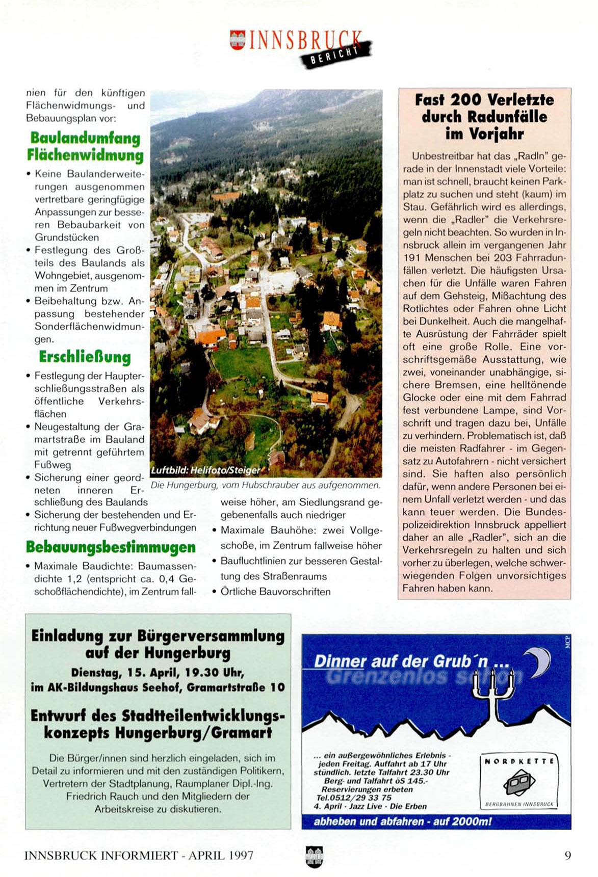 Entwurf des Stadtteilentwicklungskonzepts Hungerburg/Gramart