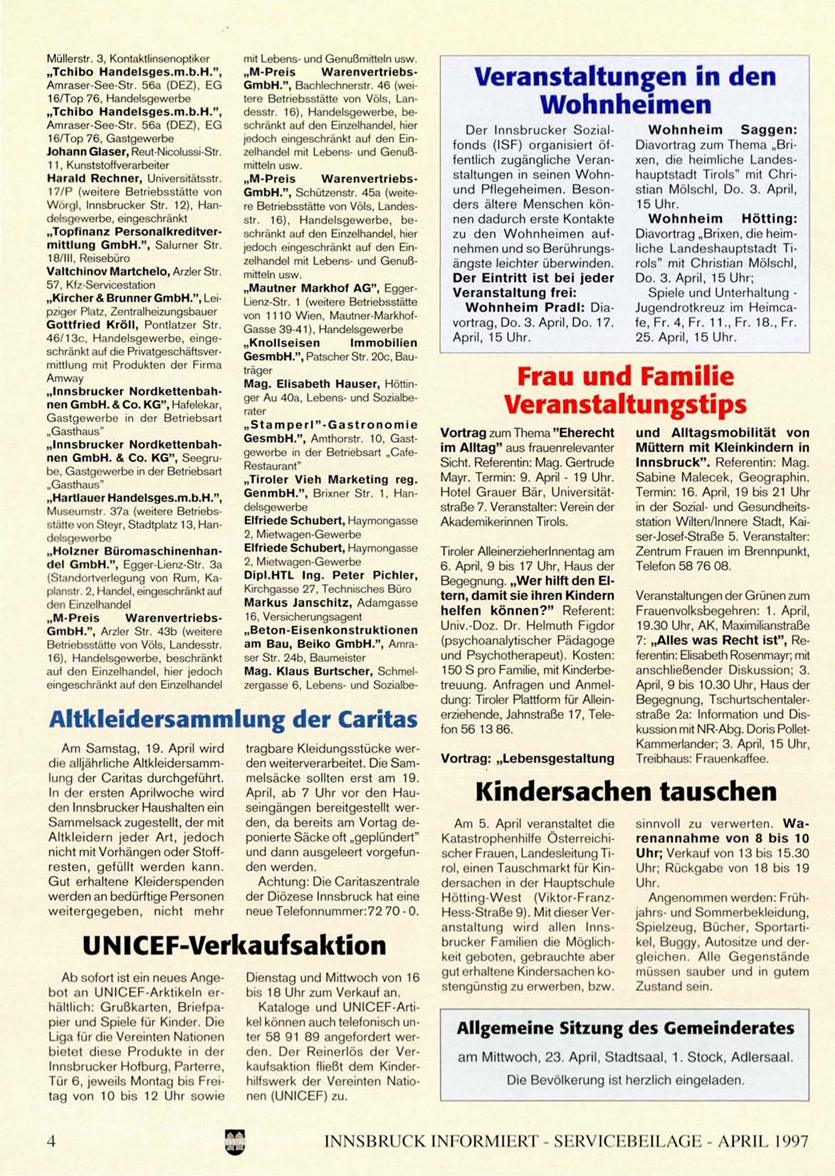 INNSBRUCK 1N1ORM1LRT - ShRVICLBLILAGL - APRIL 1W7