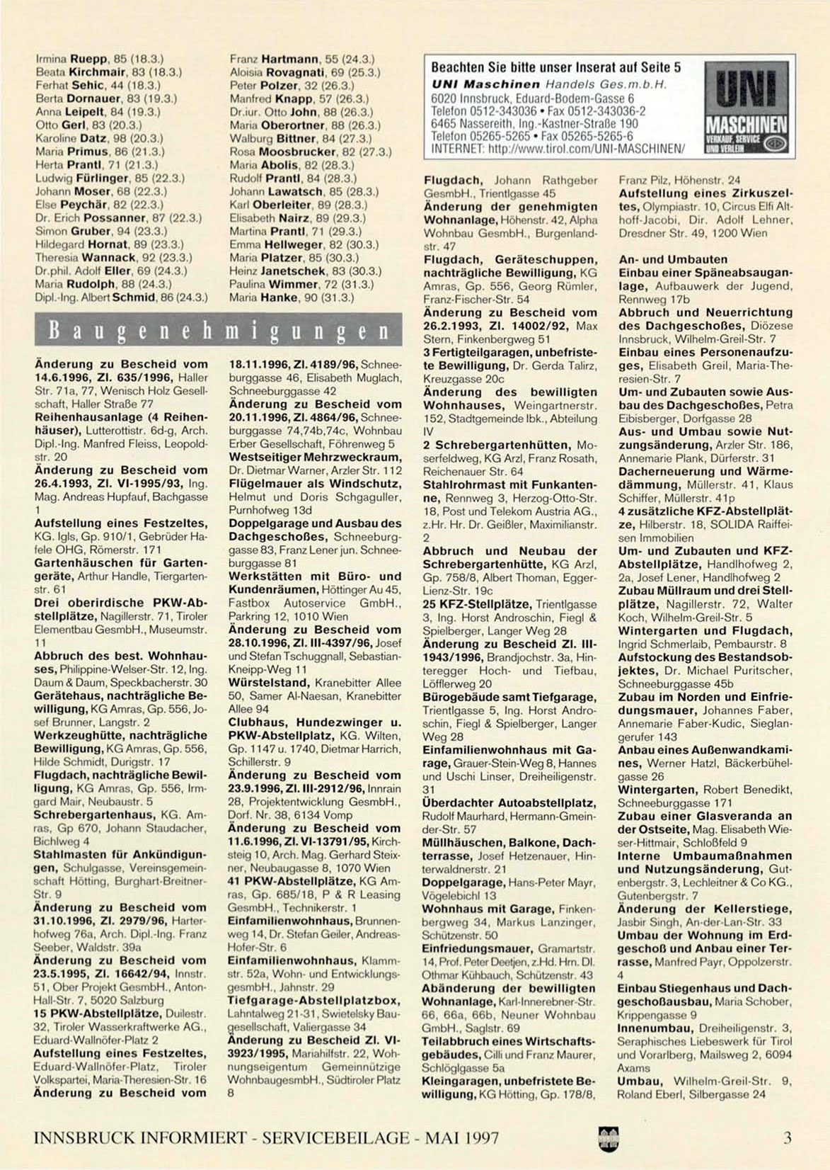Änderung zu Bescheid ZI. III1943/1996, Brandjochstr. 3a, Hinteregger Hoch- und Tiefbau,