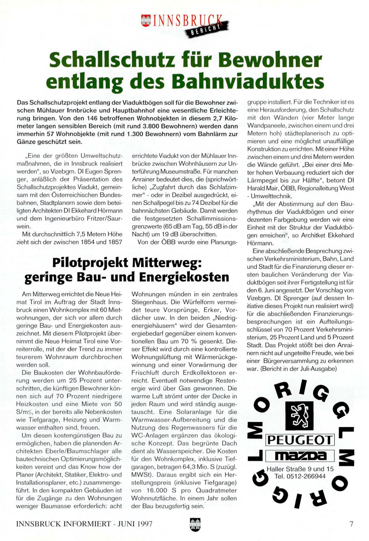 Das Schallschutzprojekt entlang der Viaduktbögen soll für die Bewohner zwischen Mühlauer Innbrücke und Hauptbahnhof eine wesentliche Erleichterung bringen. Von den 146 betroffenen Wohn Objekten in diesem 2,7 Kilometer langen sensiblen Bereich (mit rund 3.800 Bewohnern) werden dann