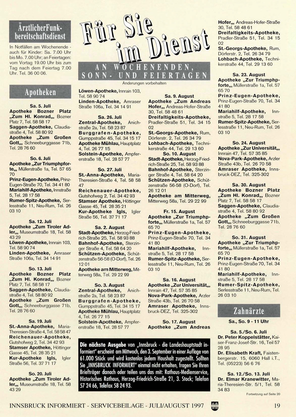 Sie „INNSBRUCK INFORMIERT" einmal nicht erhalten, fragen Sie Ihren