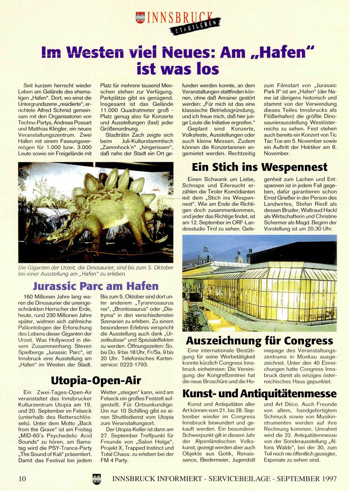 Flößerhafen) die größte Dinosaurierausstellung Westösterreichs zu sehen. Fest stehen