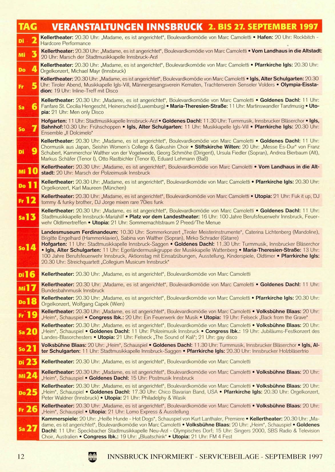 VERANSTALTUNGEN INNSBRUCK 2. BIS 27. SEPTEMBER 1997