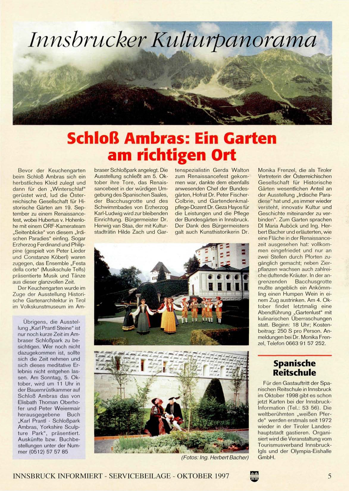 gerüstet wird, lud die Österreichische Gesellschaft für Historische Gärten am 19. September zu einem Renaissancefest, wobei Hubertus v. Hohenlohe mit einem ORF-Kamerateam