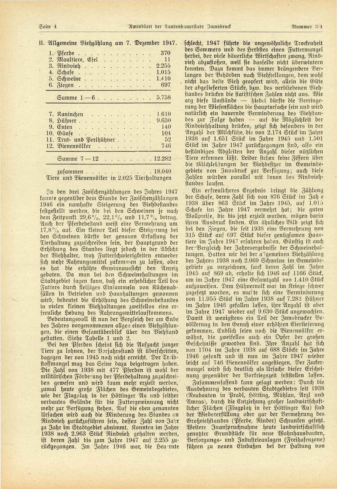 Bedeutungsvoll ist nun der Vergleich der am Ende Damit ist wenigstens ein Teil der Innsbrucker Bedes Jahres vorgenommenen allgen einen Viehzählun- völkerung in den Genuß einer erhöhten Eierliesernng
