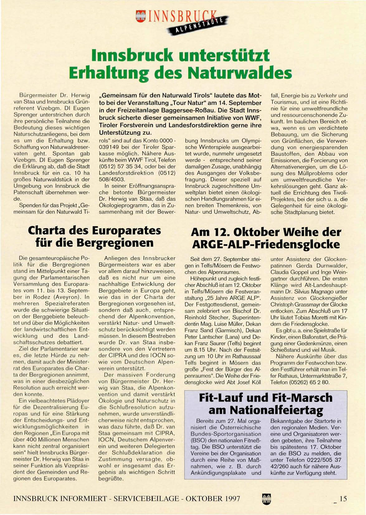 von Bürgermeister Dr. Herwig van Staa, die Alpenkonvention und damit verstärkt