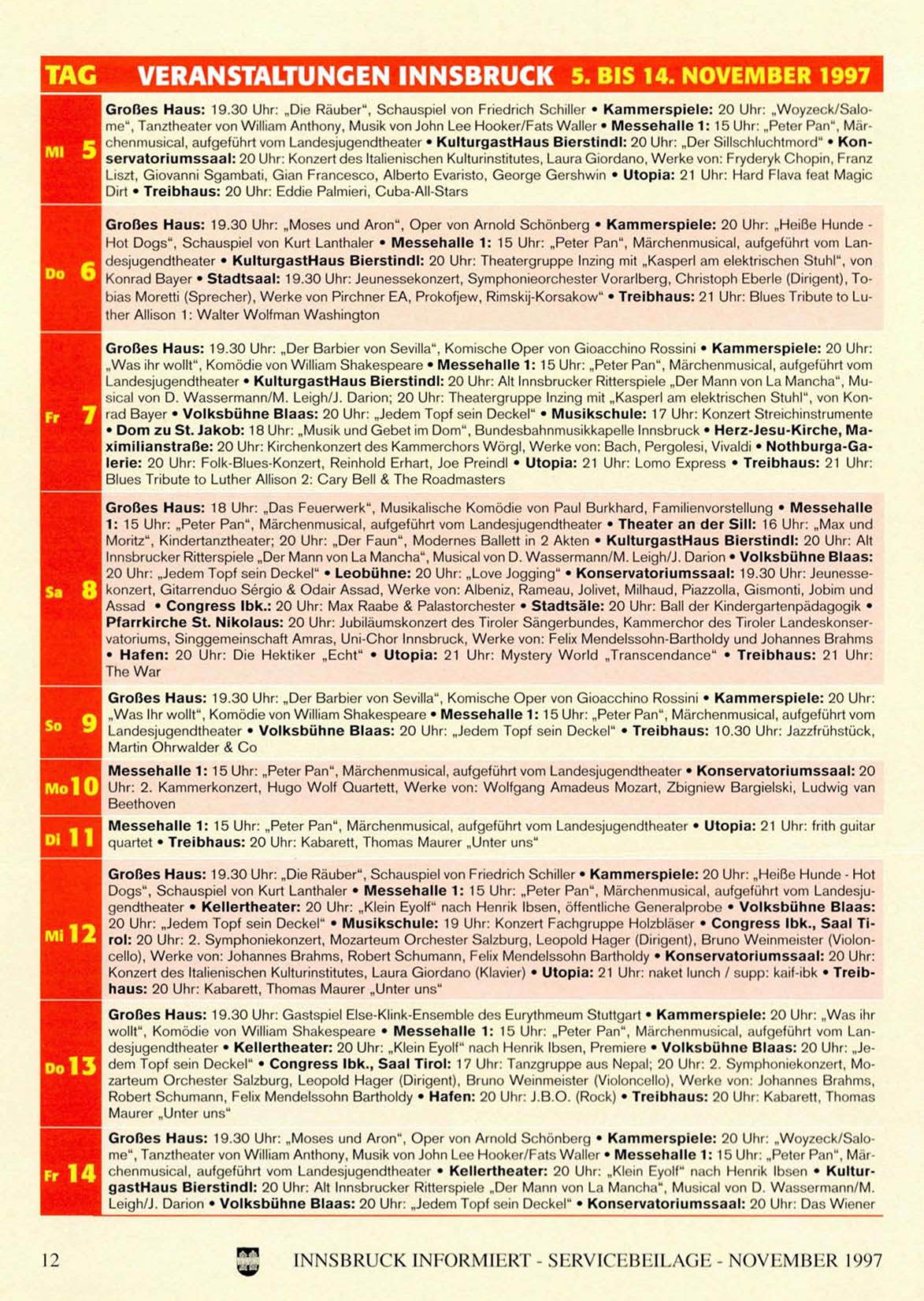 VERANSTALTUNGEN INNSBRUCK 5. BIS 14. NOVEMBER 1997