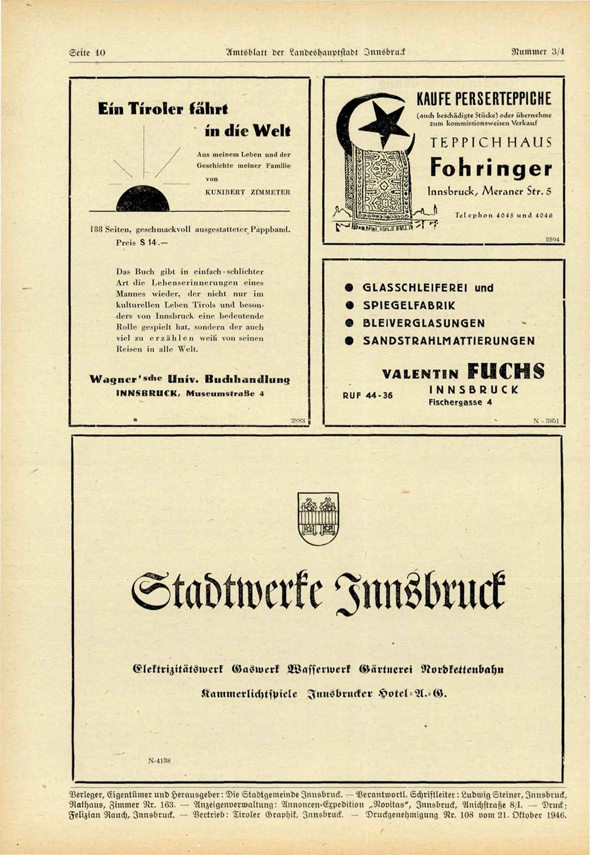 Verleger, Eigentümer und Hermisgcbor" Dio Stadlaomeinde Innsbruck.