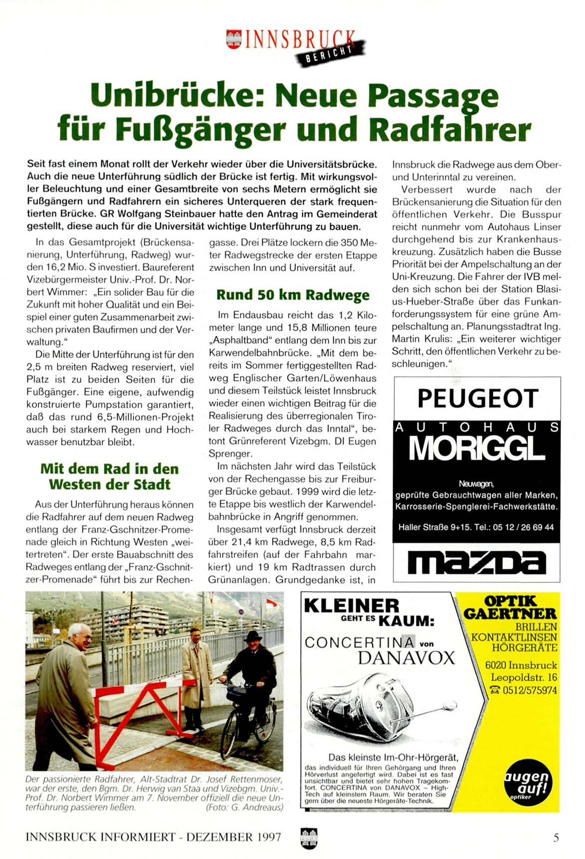 Innsbruck die Radwege aus dem Oberund Untotinnlal zu vereinen.
