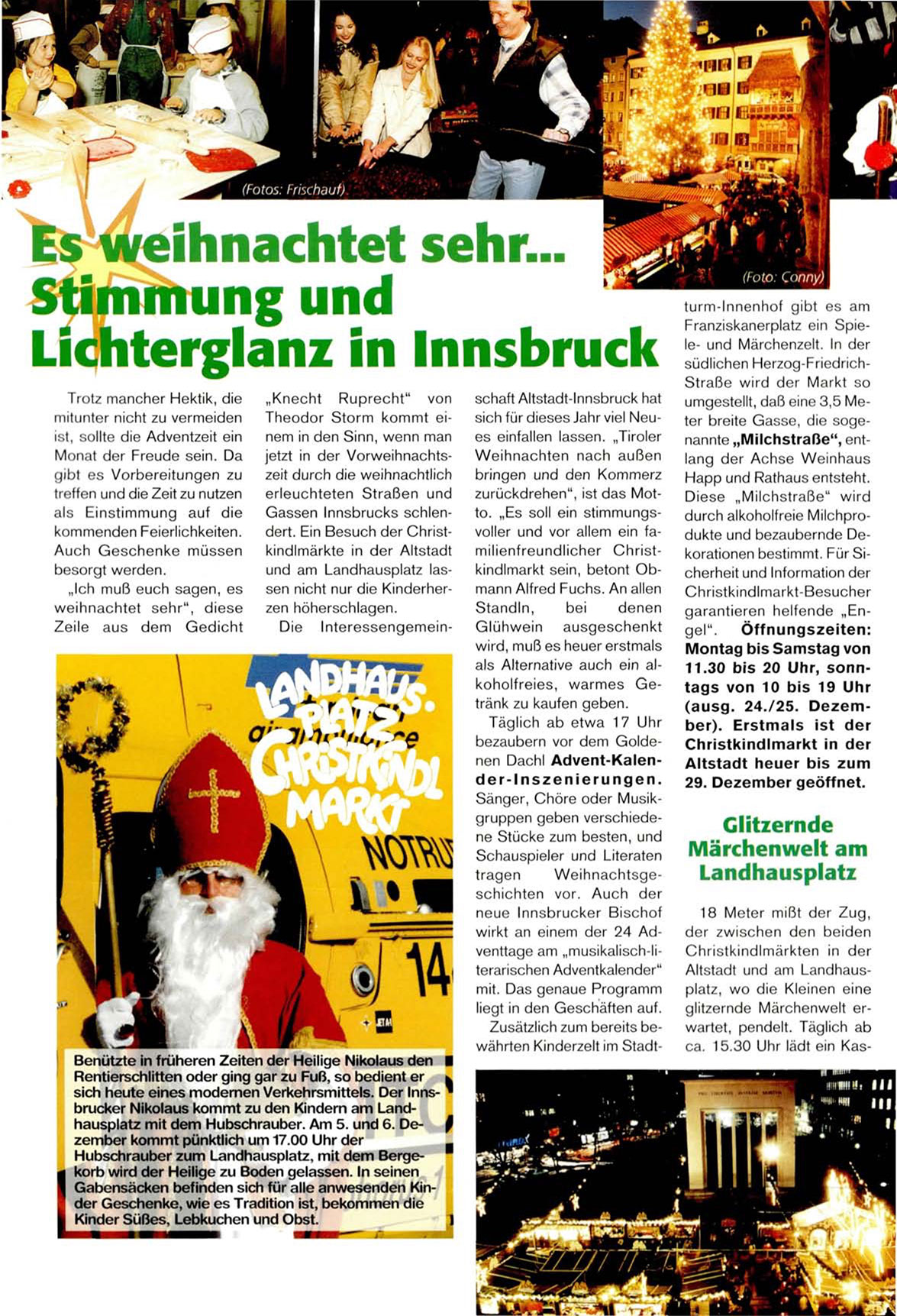 brucker Nikolaus kommt zu den Kindern am Landhausplatz mit dem Hubschrauber. Am 5. und 6. De- §