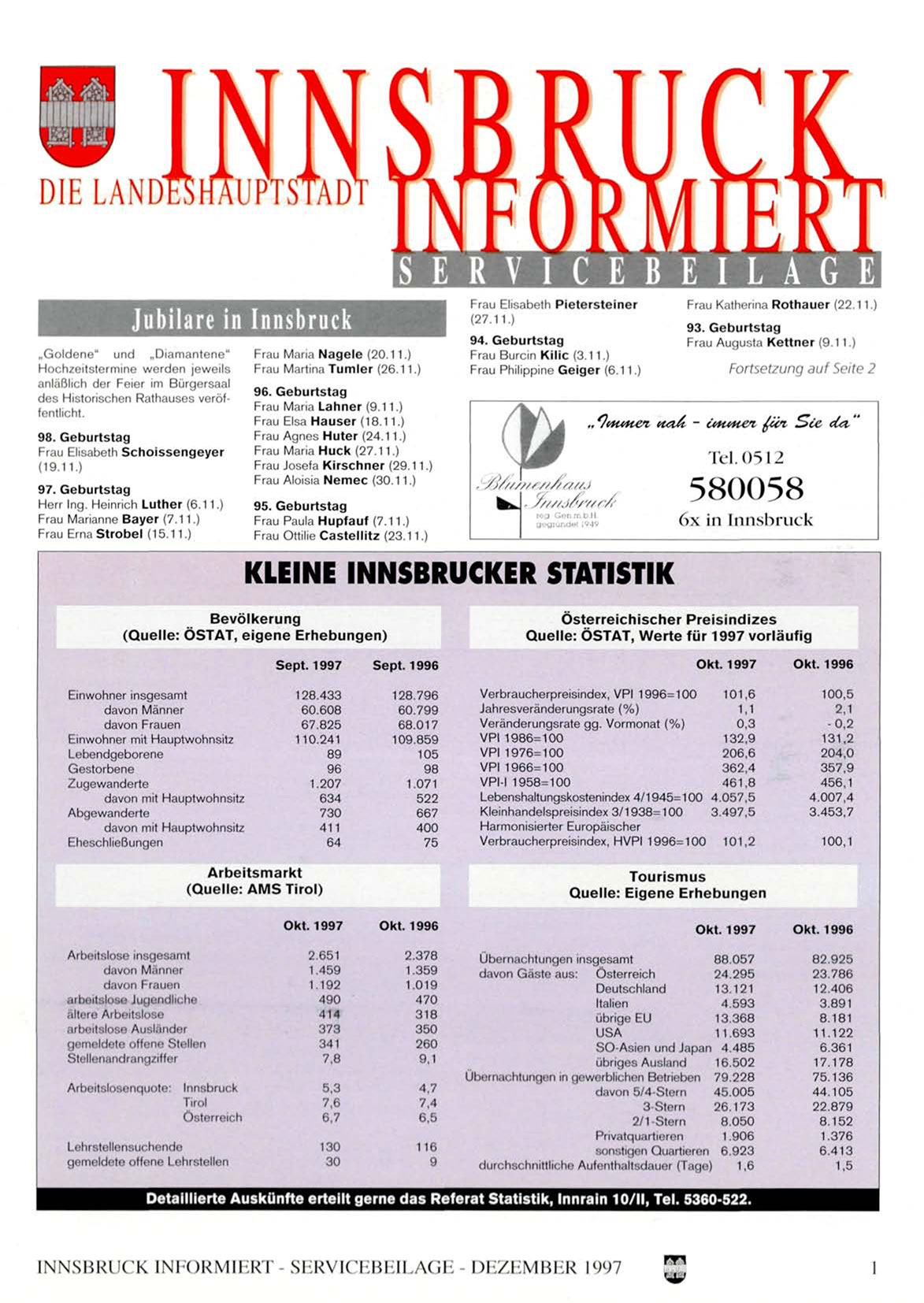 Detaillierte Auskünfte erteilt gerne das Referat Statistik, Innraln 10/11, Tel. 5360-522.