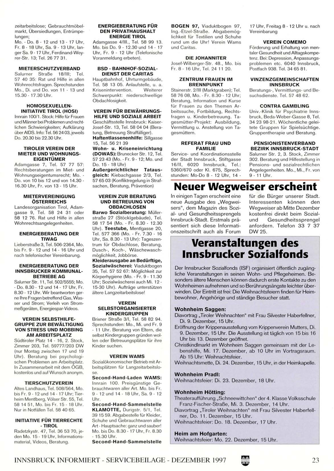 Geschäftsstelle Innsbruck: KaiserJosef-Str. 13, Tel. 58 04 04 (Beratung, Betreuung Straffälliger).