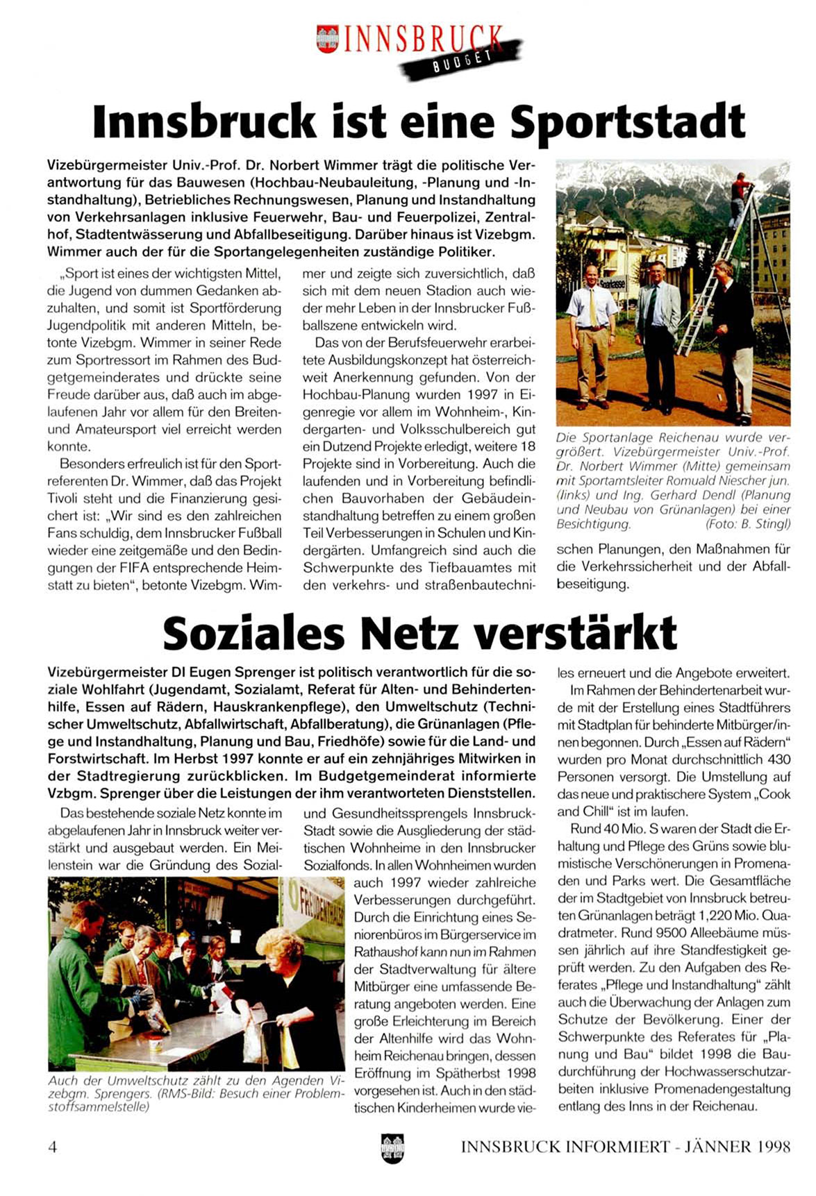 und Gesundheitssprengeis InnsbruckStadt sowie die Ausgliederung der städtischen Wohnheime in den Innsbrucker