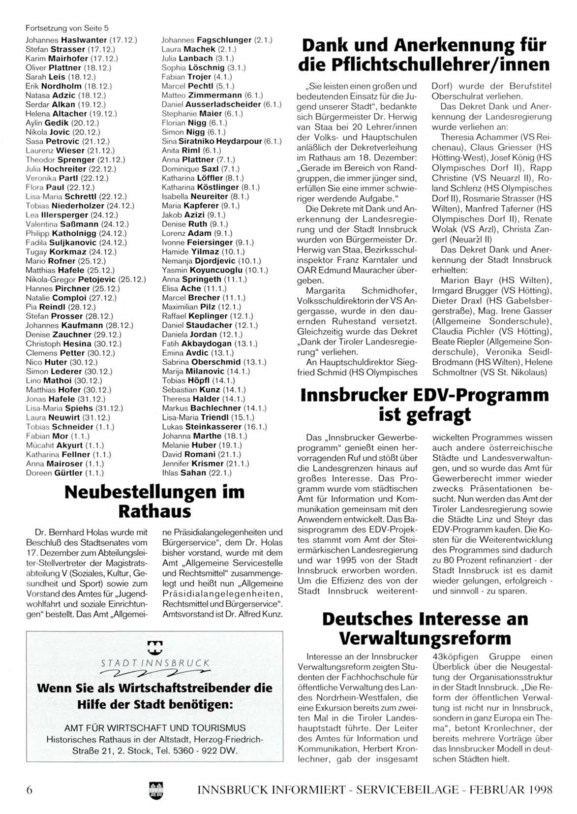 in der Stadt Innsbruck. „Die Reform der öffentlichen Verwaltung ist nicht nur in Innsbruck,