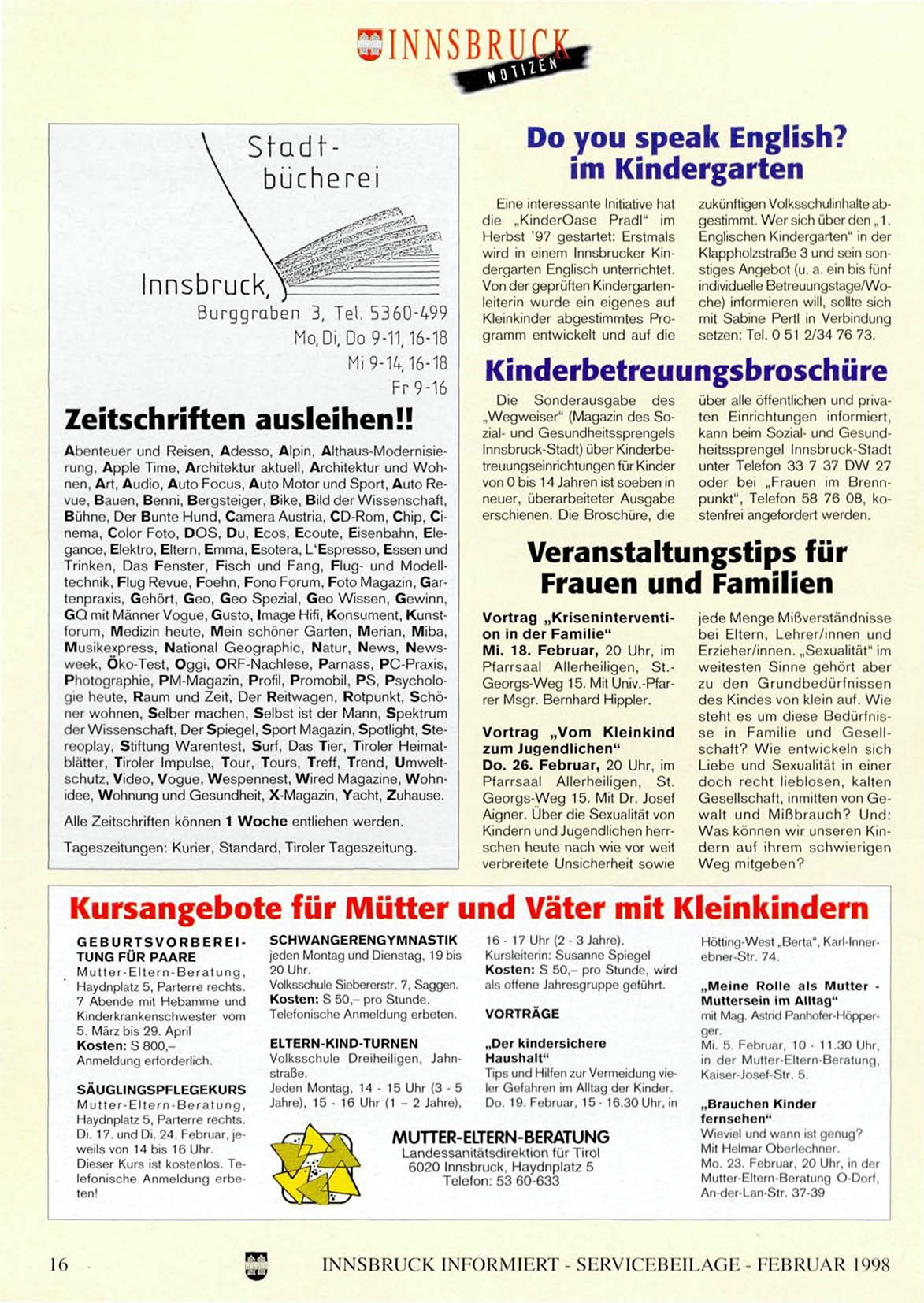 INNSBRUCK INFORMIERT - SüRVlCliBlilLAGI- - FEBRUAR 1998