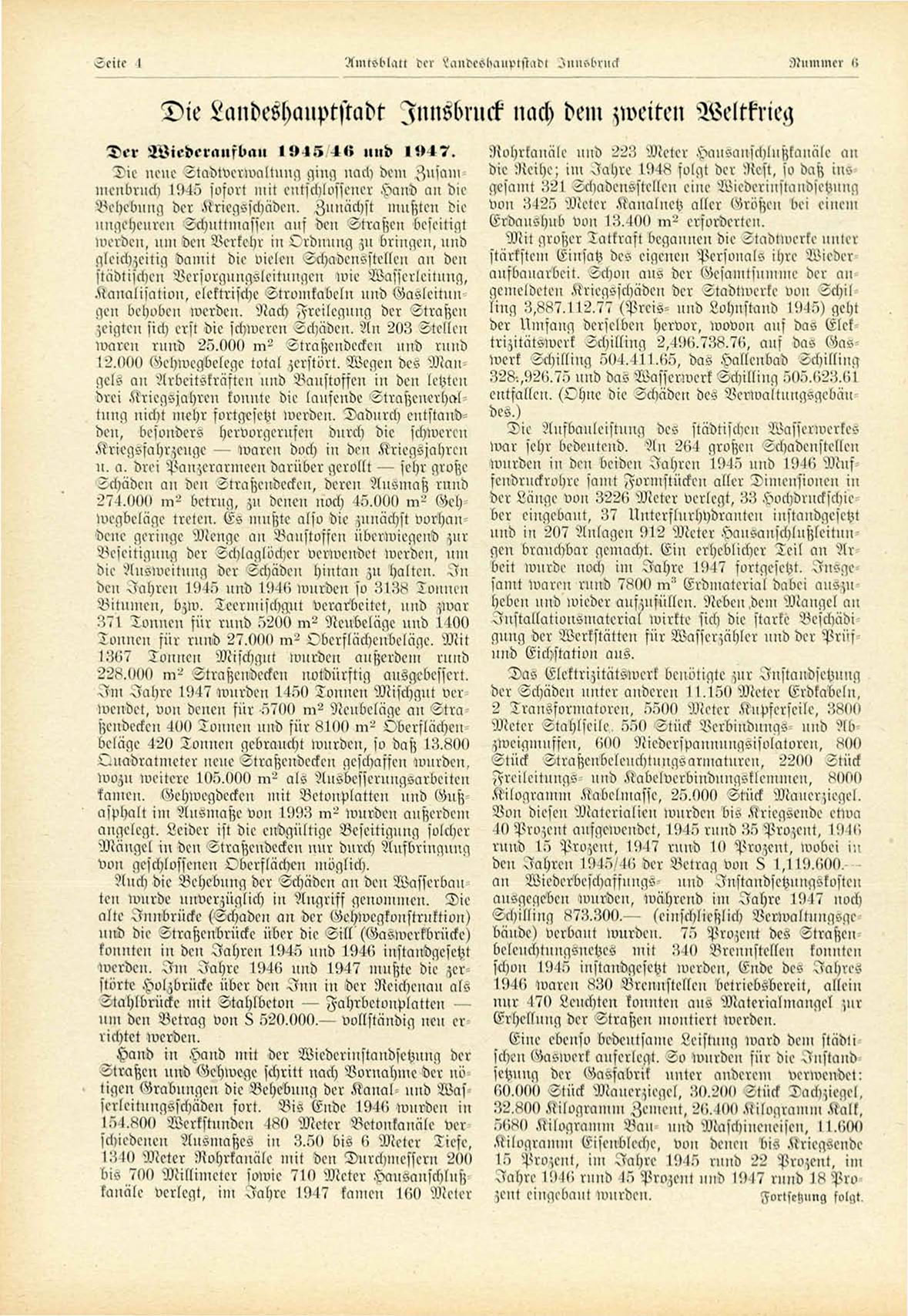 Die Landeshauptstadt Innsbruck nach dem zweiten Weltkneq