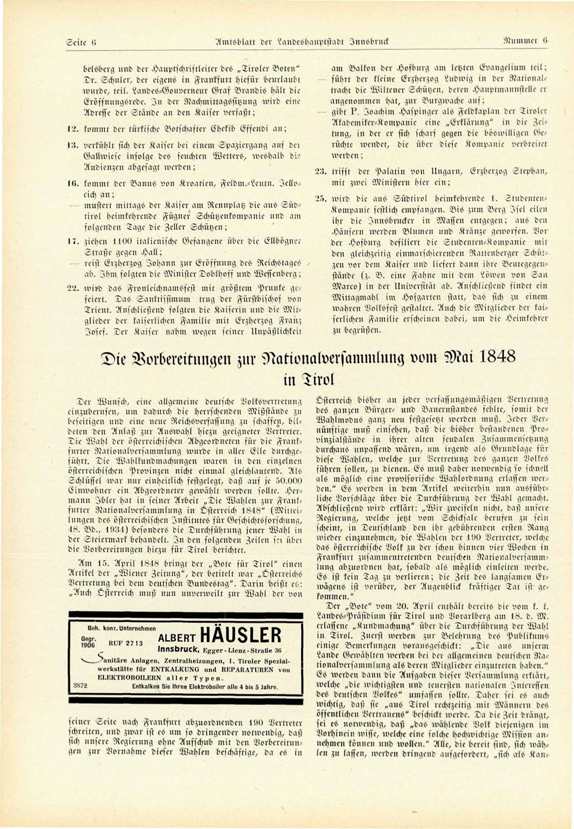 Einwohner ein Abgeordneter gewählt werden sollte. Hermann I b l e r hat in seiner Arbeit „Die Wahlen zur Frankfurter Nationalversammlung i n Österreich I.^ltt" ( M i l t e i lungen des österreichischen Institutes für Geschichtsforschung,