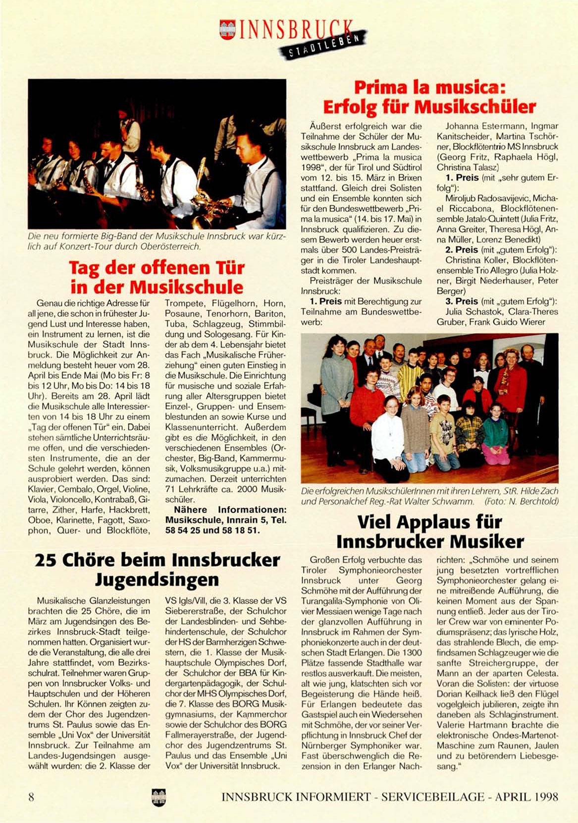 Musikschule der Stadt Innsbruck. Die Möglichkeit zur Anmoldung besteht heuer vom 28.
