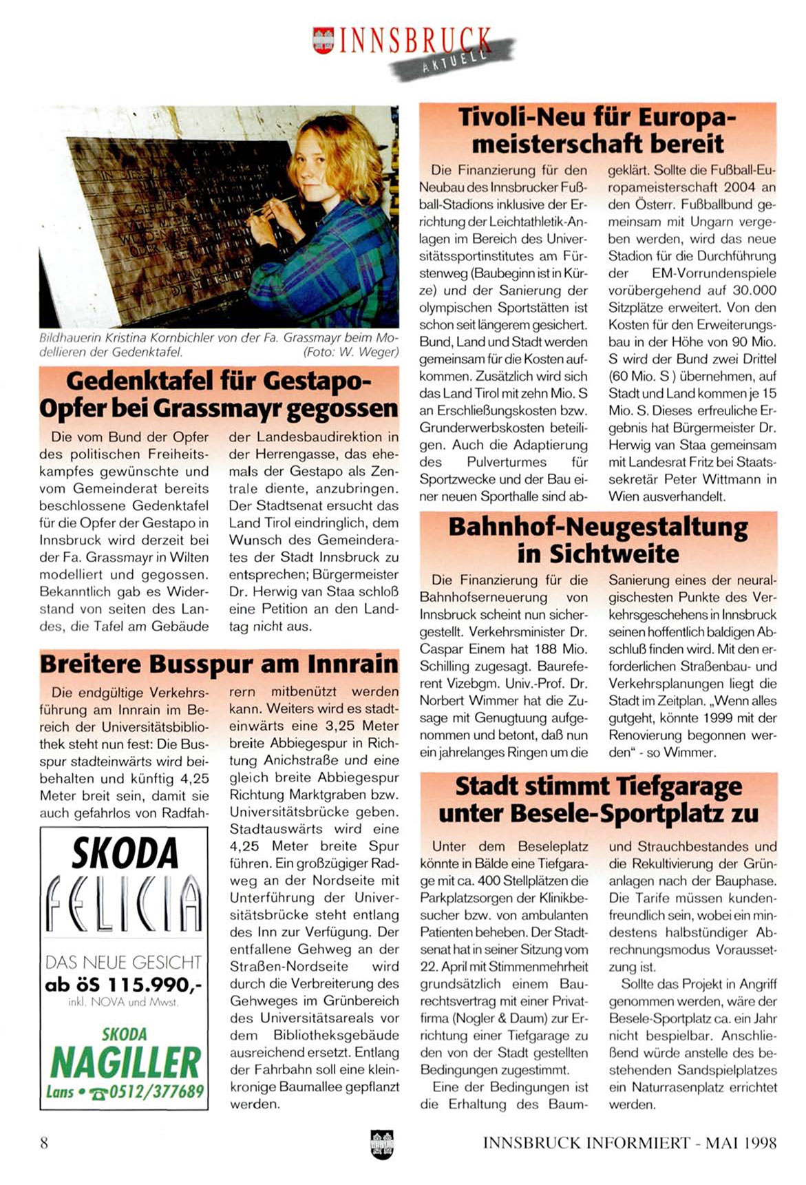 Gedenktafel für GestapoOpfer bei Grassmayr gegossen