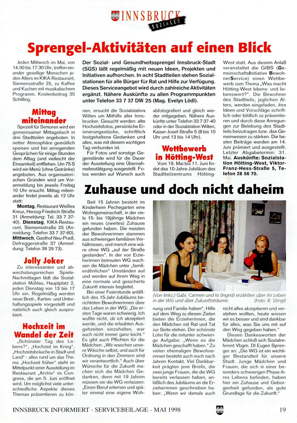 Mai Auskünfte: Sozialstation Hötting-West, ViktorFranz-Hess-Straße 5, Telefon 28 56 70.