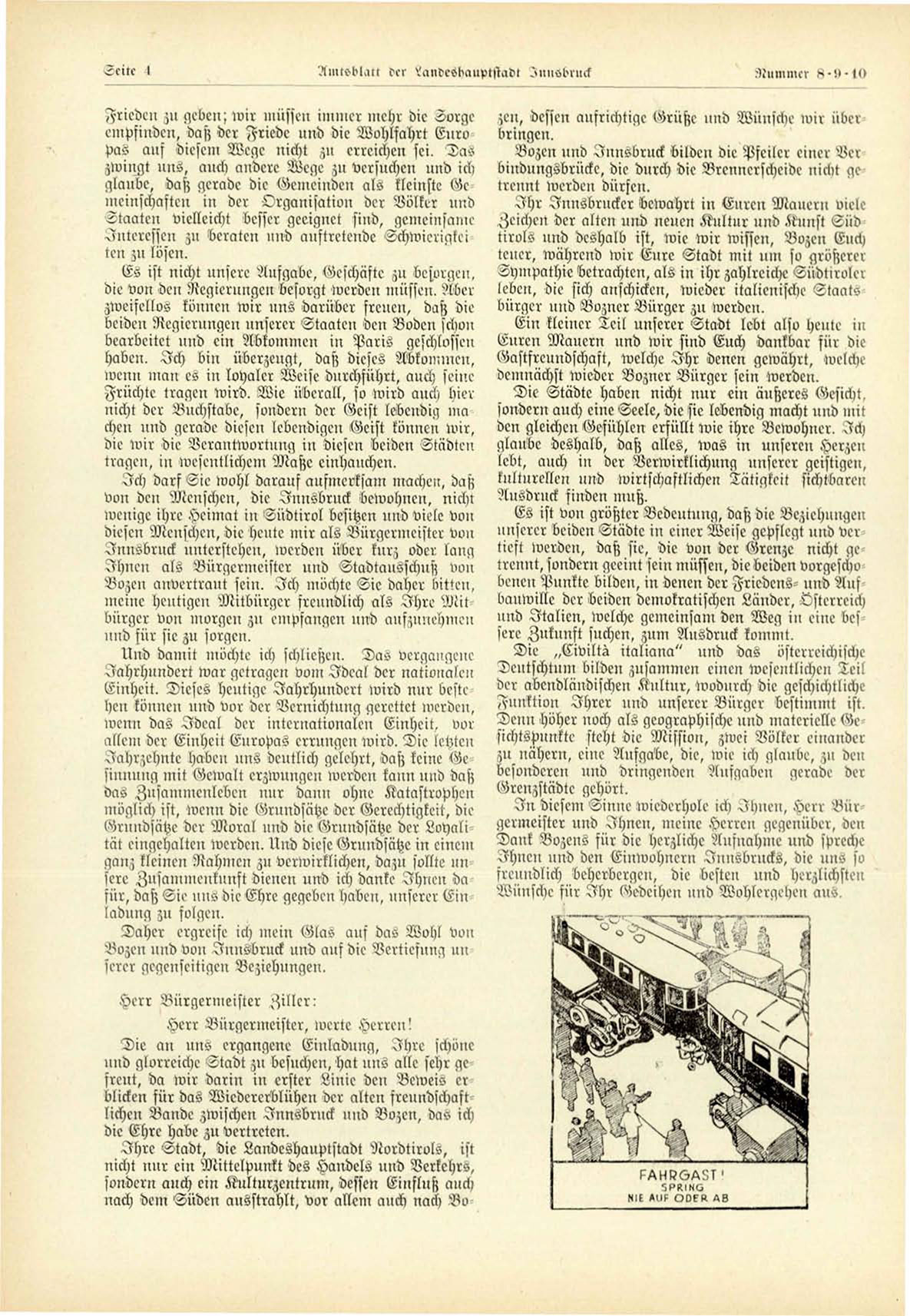 freut, da wir darin in erster Linie den Beweis erblicken für das Wicdcrerblühen der alten freundschaftlichen Bande zwischen Innsbrnck uud Bozen, das ich