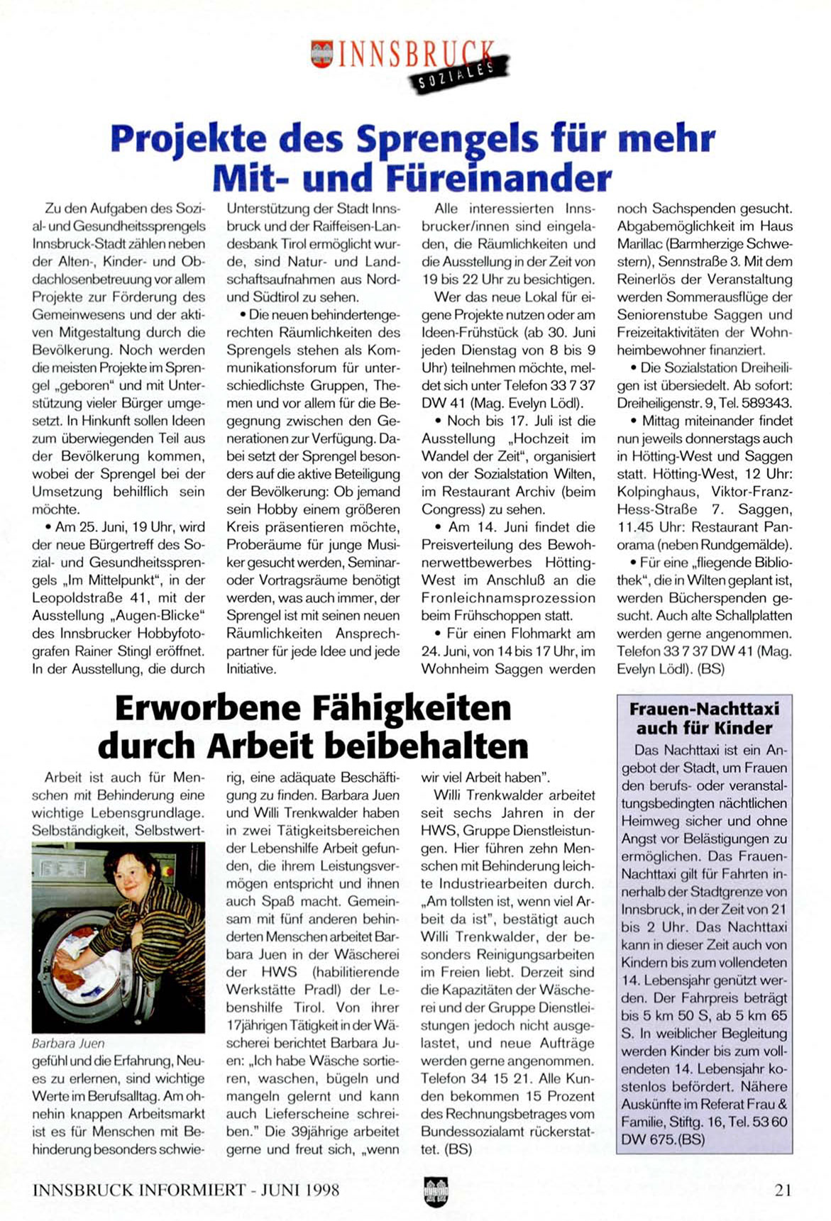 Werkstätte Pradl) der Lebenshilfe Tirol. Von ihrer