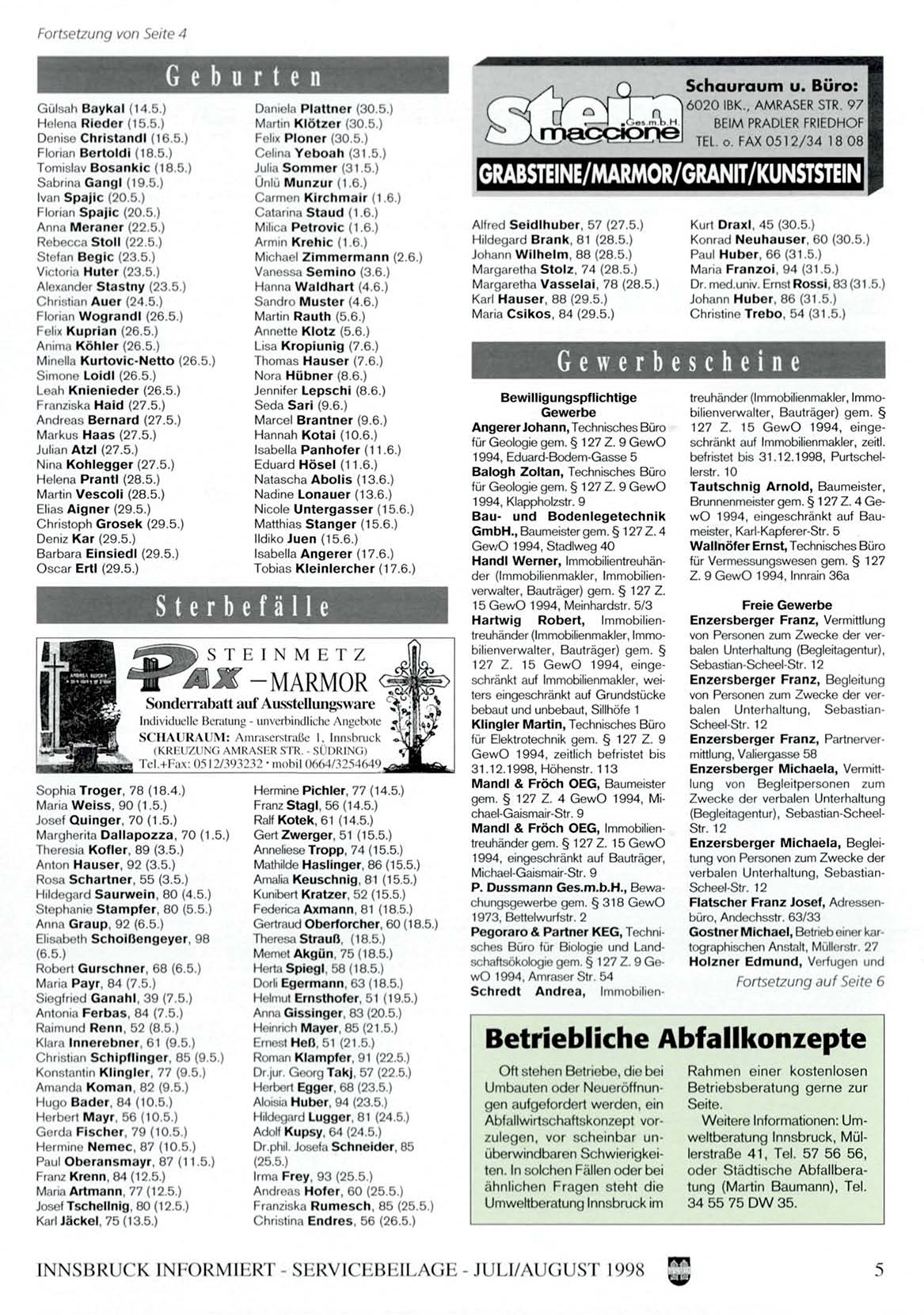 INNSBRUCK INIORMILRT - ShRVlCLBLlLACJL - JULI/AUGUST 1998