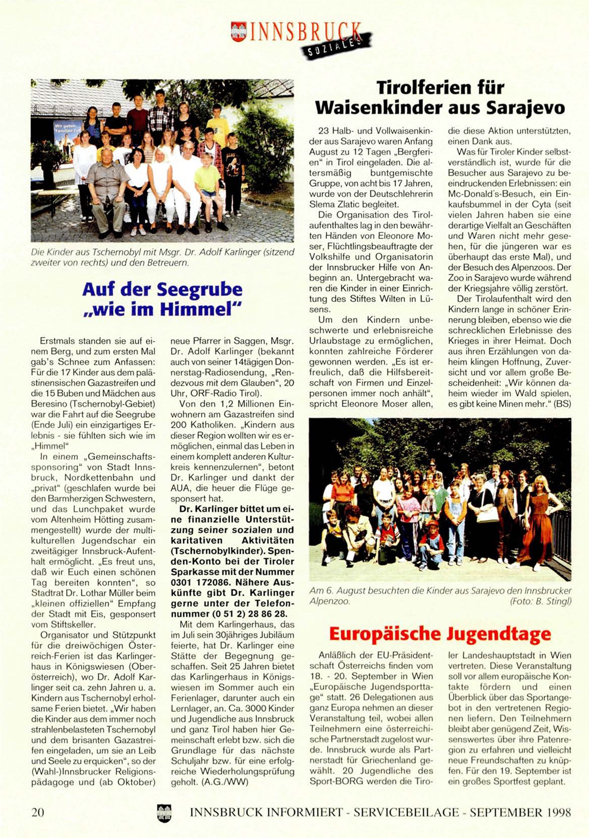 0301 172086. Nähere AusAm 6. August besuchten die Kinder aus Sarajevo den Innsbrucker