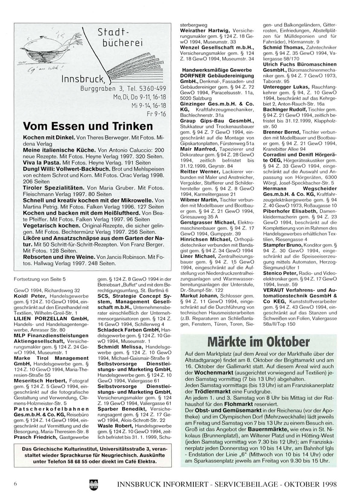 INNSBRUCK INFORMIHRI - SliRVICliBlilLAGli - OK TO BLR 1998
