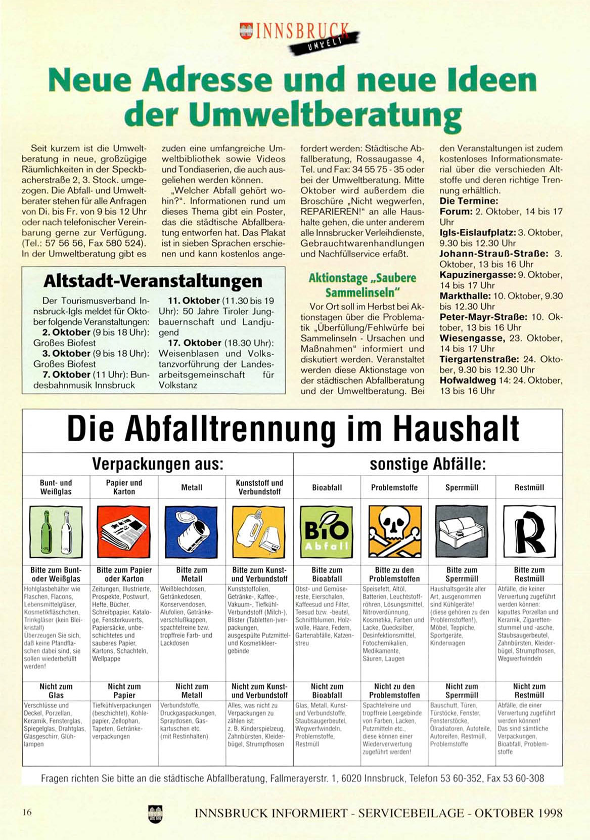 Fragen richtnn Sie hittn an din stàdtische Abfallberatung. Fallmerayerstr. 1. 60?0 Innsbruck, Tnlnfon 53 60-352, Fax 53 60-308