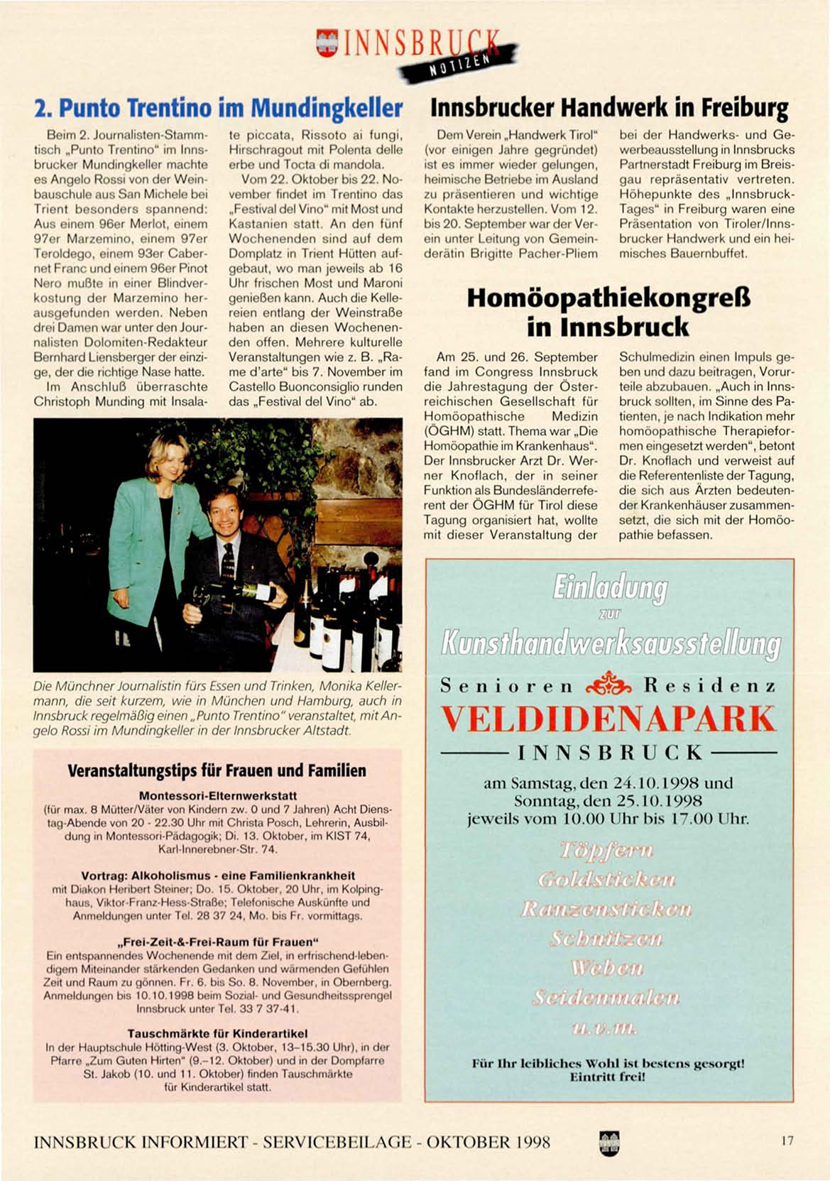 Innsbruck regelmàBig einen „ Punto Trentino" veranstaltet, mit Angelo Rossi im Mundingkeller in der Innsbrucker Altstadt.