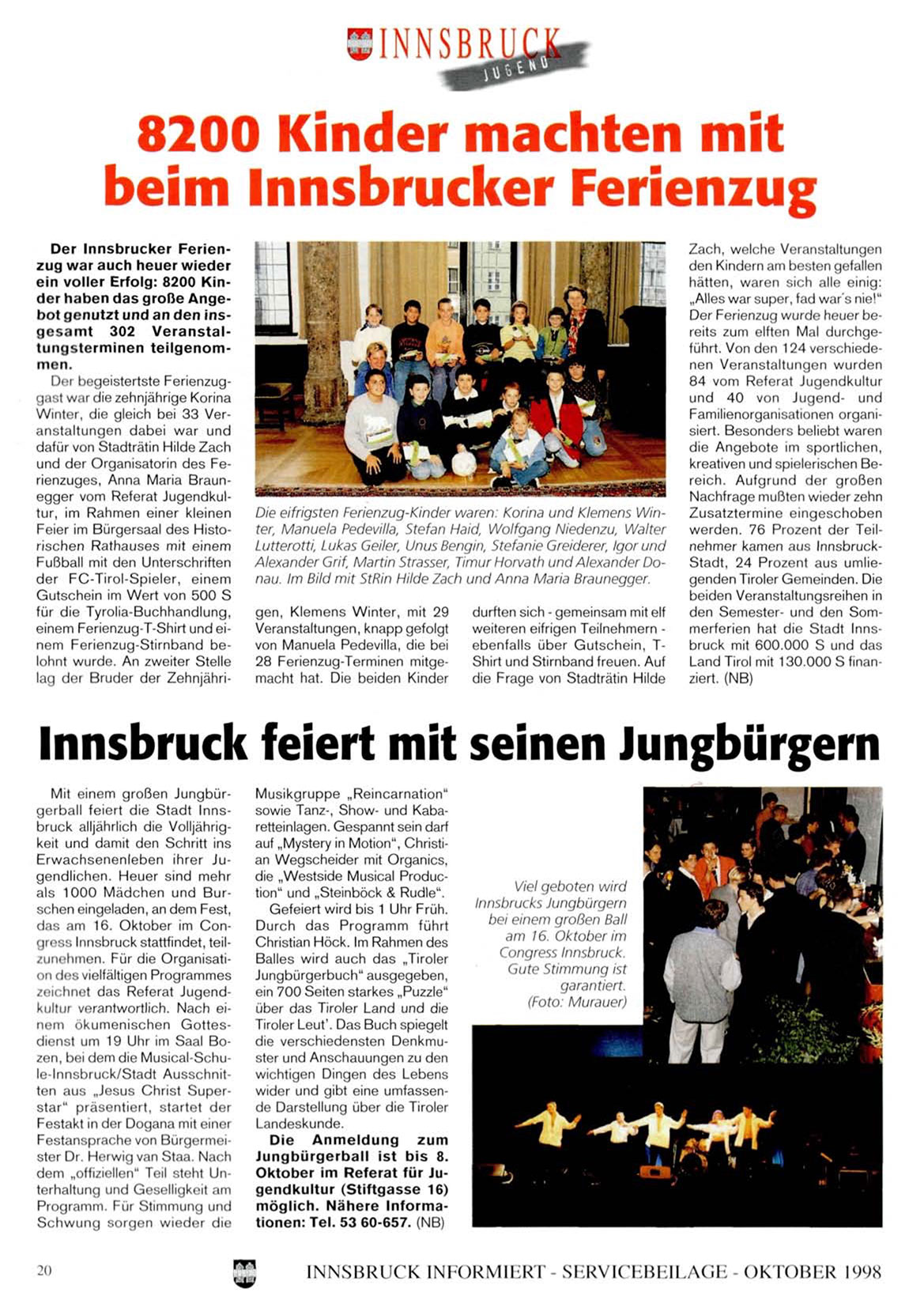 merferien hat die Stadt Innsweiteren eifrigen Teilnehmern Veranstaltungen, knapp gefolgt