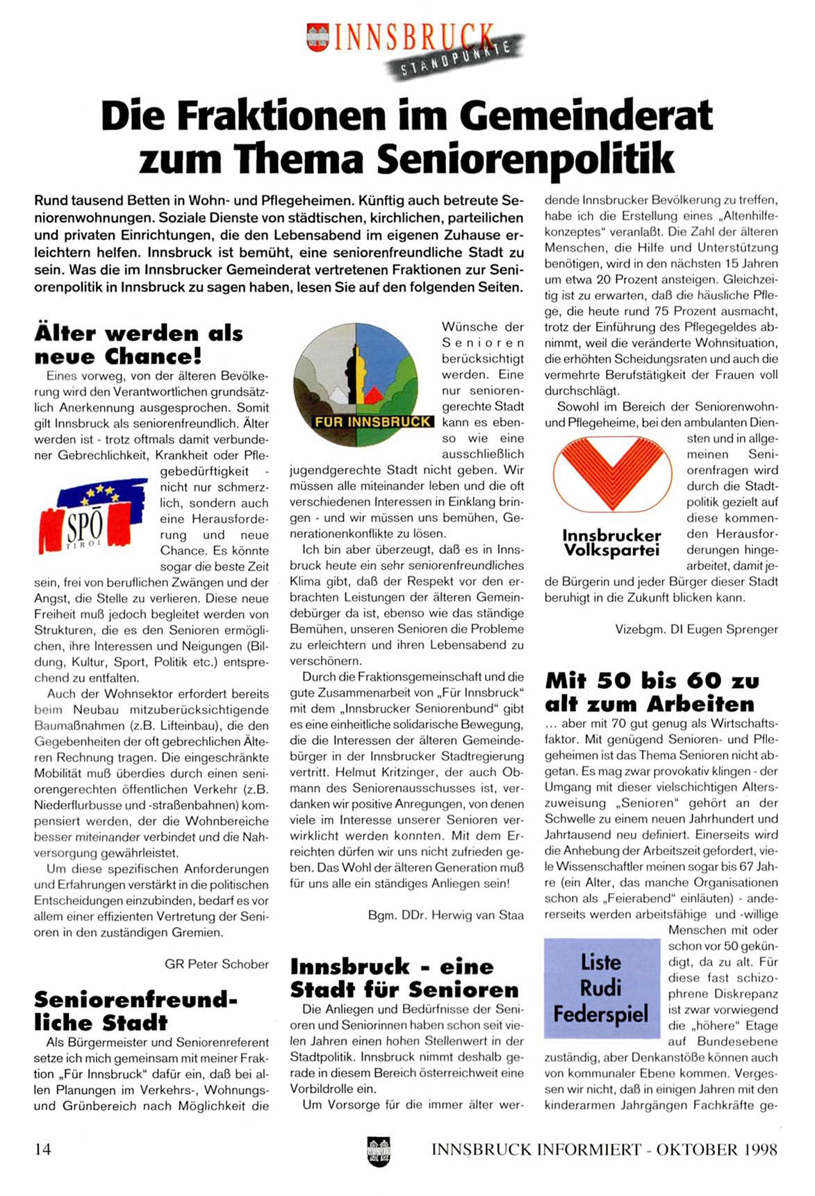 die die Interessen der àlteren Gemeindebùrger in der Innsbrucker Stadtregierung