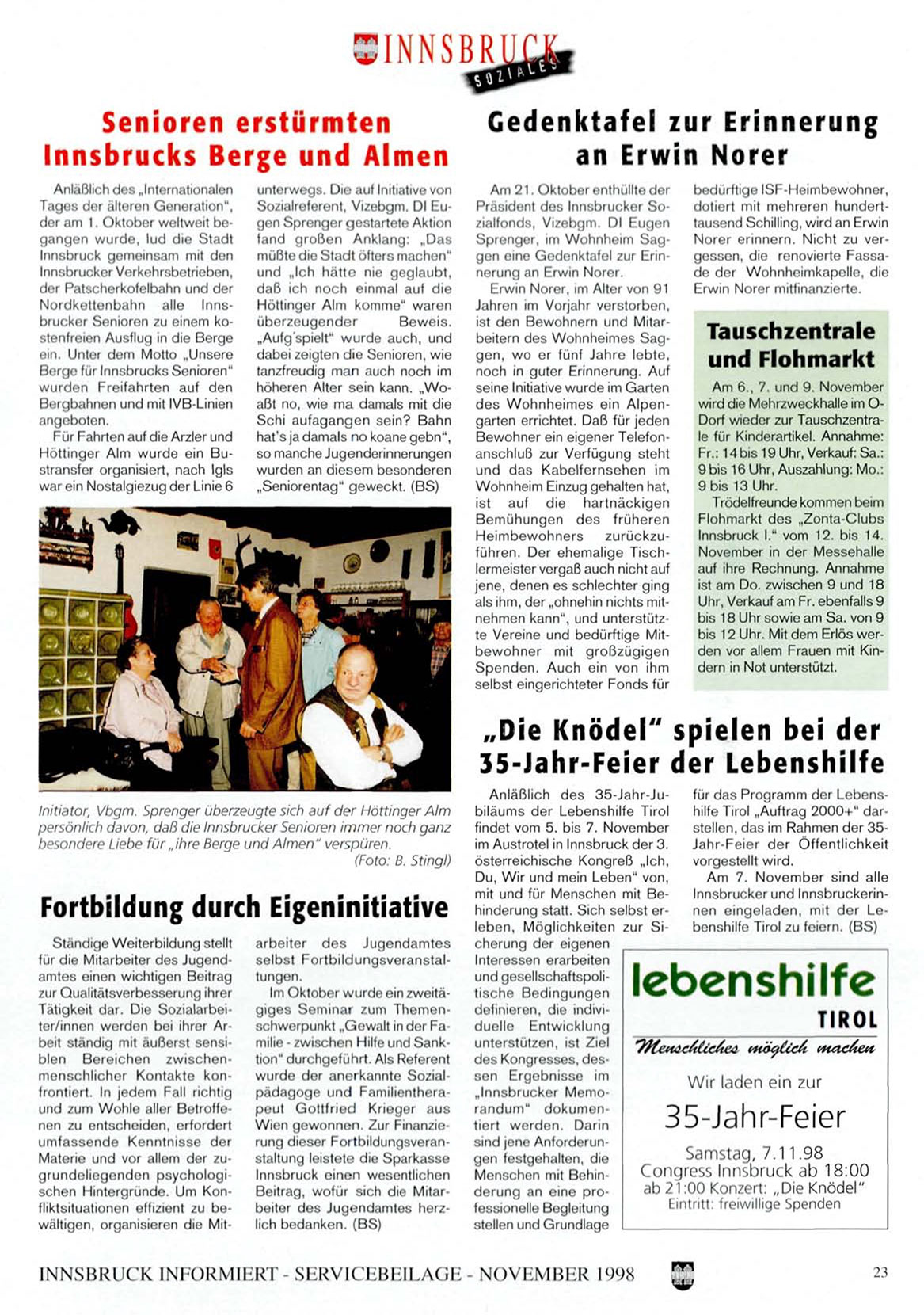 Anläßlich des 35-Jahr-Jubiläums der Lebenshilfe Tirol