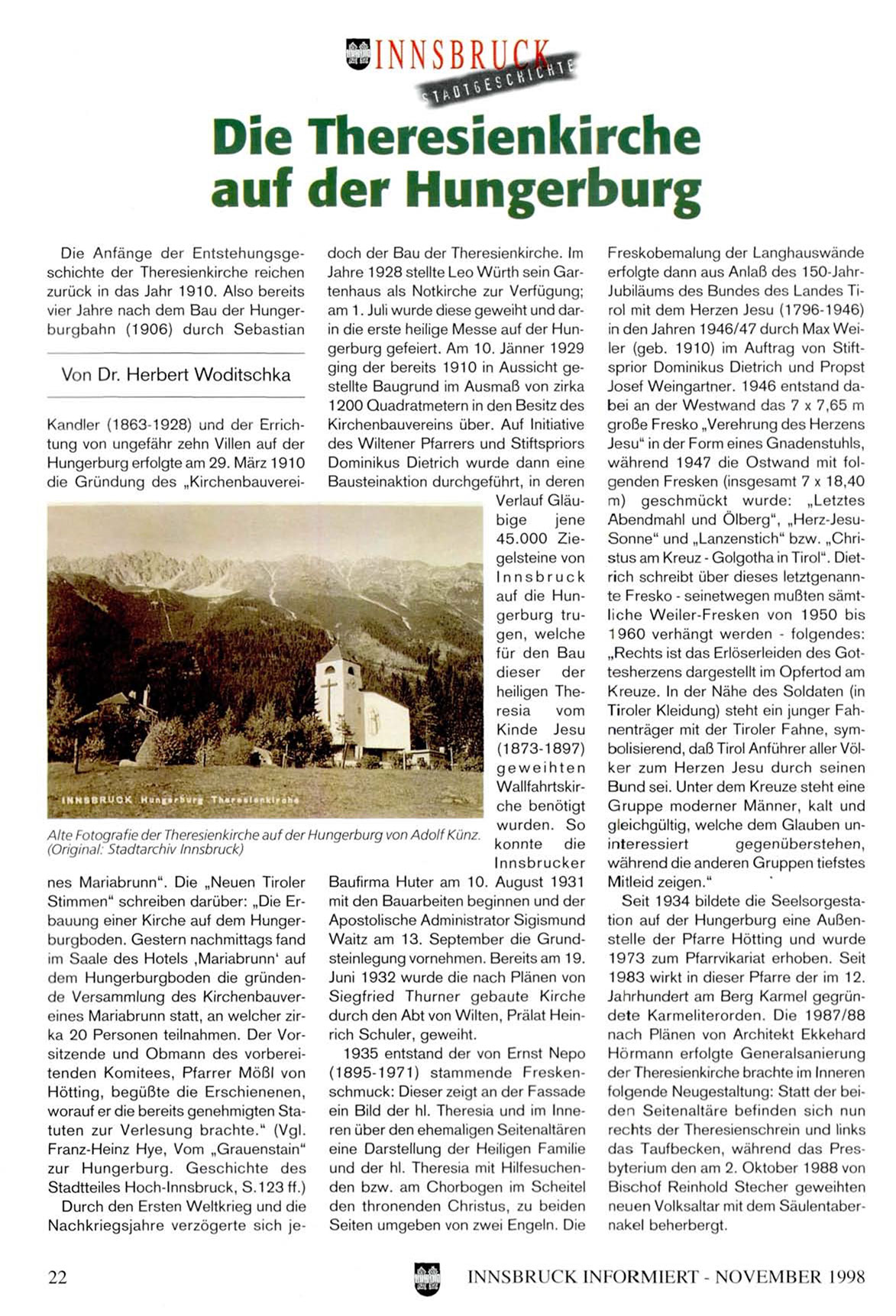 und der hl. Theresia mit HilfesuchenStadtteiles Hoch-Innsbruck, S. 1 23 ff.) den bzw. am Chorbogen im Scheitel