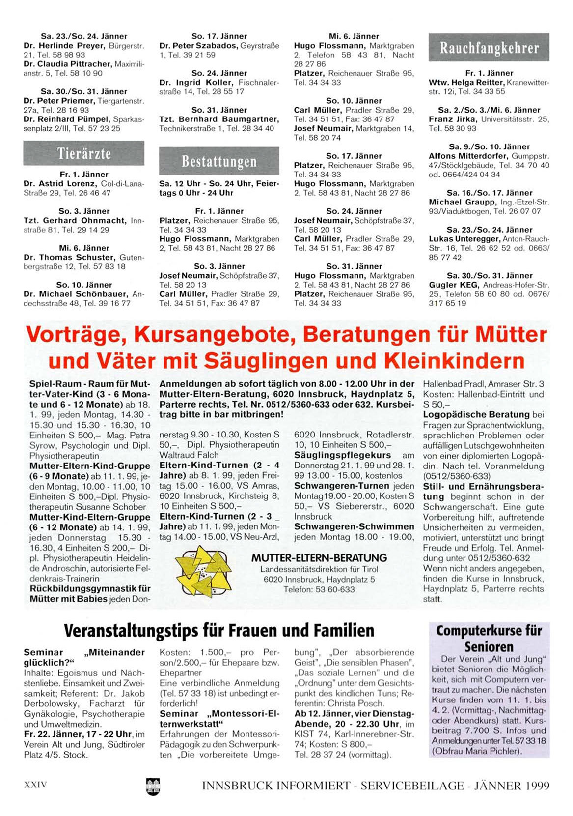 Jahre) ab 11. 1. 99, jeden Montag 14.00 - 15.00, VS Neu-Arzl,